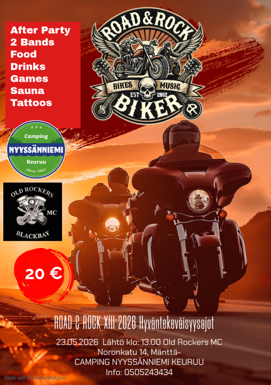 Klo:13.00 Lähtö Old Rockers Mc talli. Noronkatu 14. Mänttä